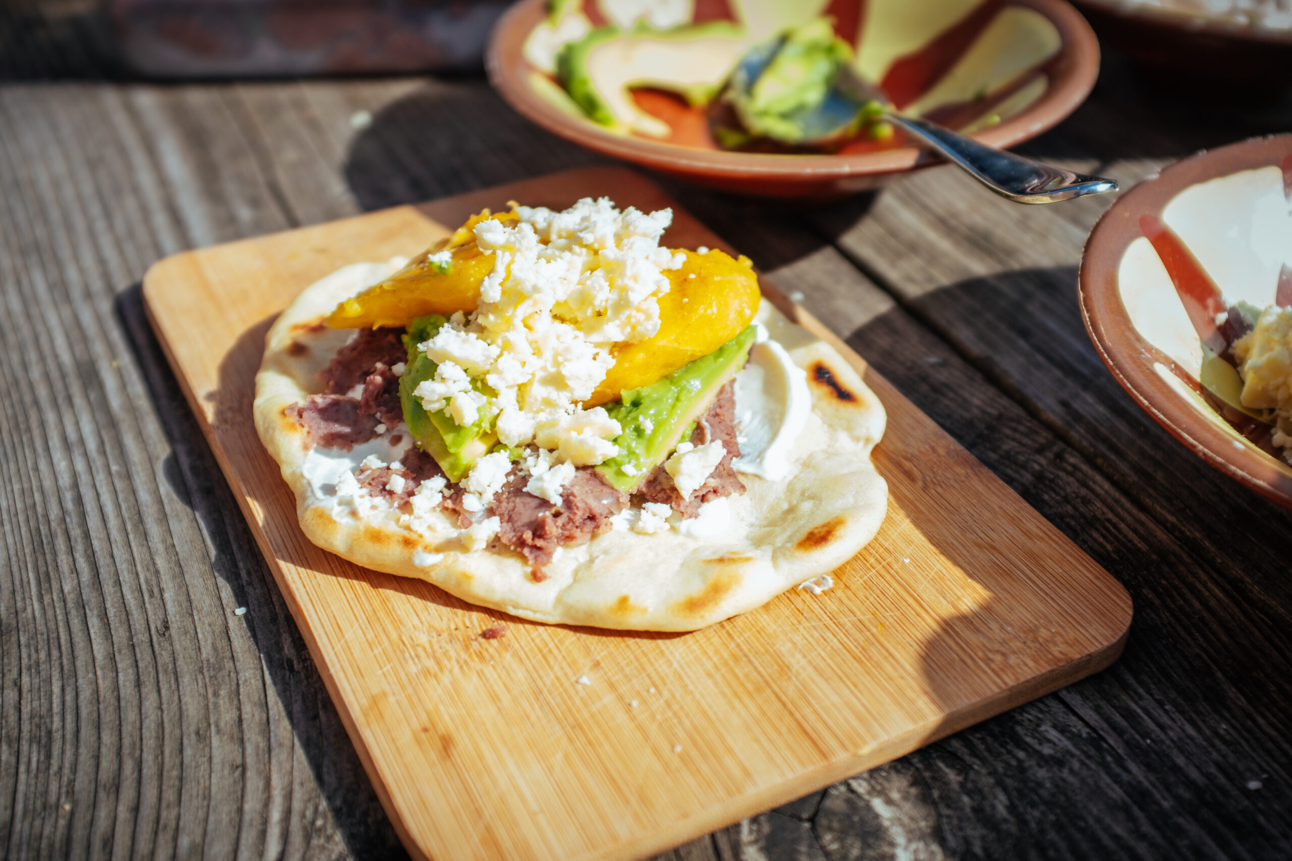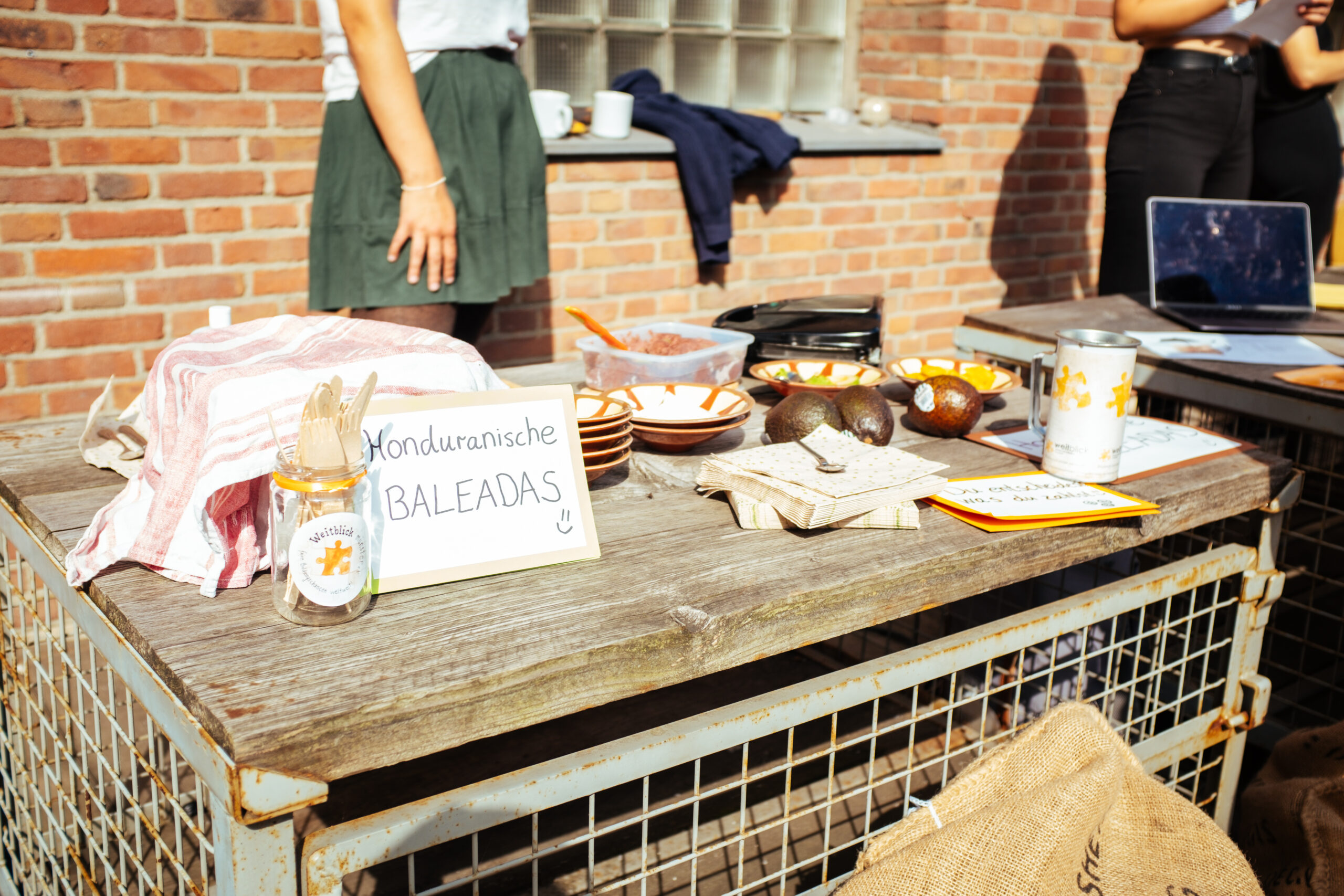 Für den Kaffee in unserer Pause konnten wir mit Restbeständen aus der Trafostation unserer ersten manoamano Lieferung einen wohlschmeckenden Filterkaffee zubereiten. Denn der gemahlene und gut verpackte Kaffee verliert zwar mit der Zeit ein wenig an Kraft, aber keineswegs an Haltbarkeit. Begleitend zur Tasse Kaffee hatte die Honduras Gruppe leckere „Baleadas“ mitgebracht, ein honduranisches Street Food, welches aus einem Weizenfladen gefüllt mit Créme Fraiche, frittierten Bohnen, Avocado, Kochbananen und Käse kreiert wird. Das ein wenig exotische Gericht war innerhalb der wenigen Stunden ausverkauft.