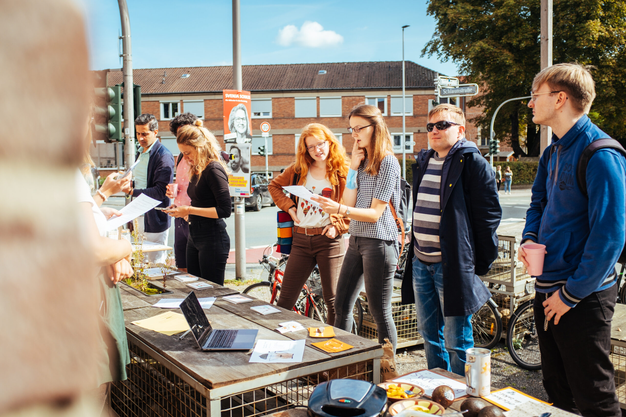 Am Samstag, den 18.09, fanden wir uns mit der Hondurasgruppe von Weitblick Münster bei strahlendem Sonnenschein an der Trafostation Münster ein, um unser Kaffeequiz inklusive Kaffeebar und Street-Food-Stand aufzubauen. Unsere Veranstaltung „Kaffeepause“ fand im Rahmen der Fairen Woche statt, einer Aktionswoche von Forum Fairer Handel e.V.. Für unsere Quizrunde hatten wir Schätz- und Wissensfragen vorbereitet. Sie reichten von „Wie viel Kaffee trinken die Deutschen täglich?“ bis „Wie viel verdient ein Kleinbauer/eine Kleinbäuerin an 500g Rohkaffee im Fairtrade Handel und in unserem Direkthandel?“